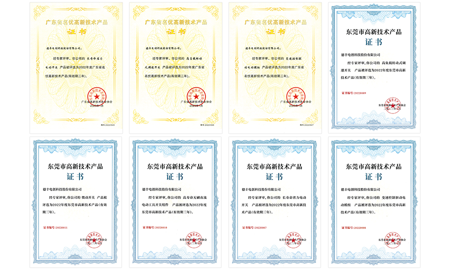 近日,德丰经高新技术企业协会审查、专家评选、审核复核等程序,获评2022年省级、市级共8项高新技术产品荣誉。