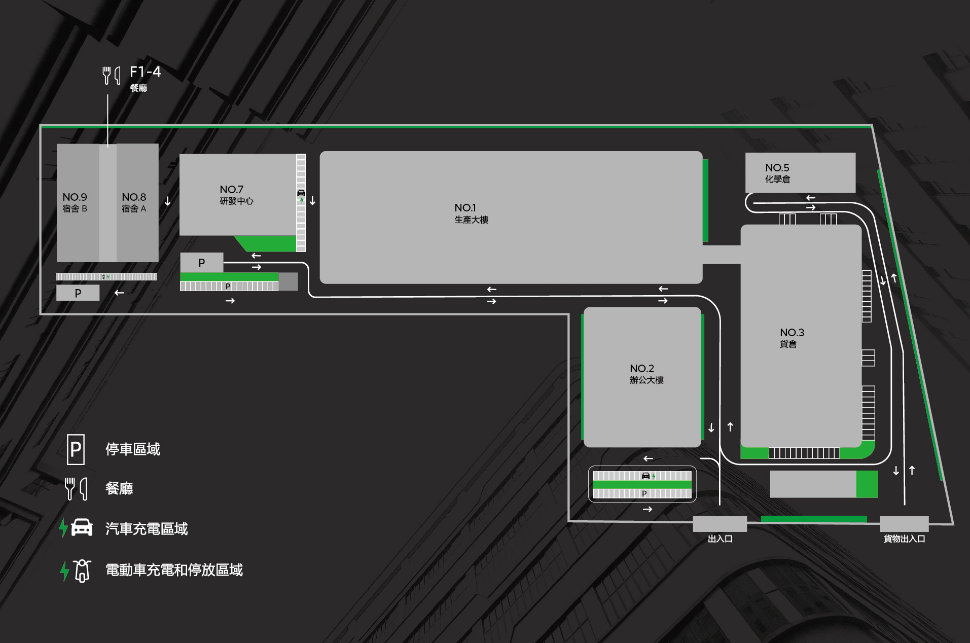 園區所有可用屋頂均安裝太陽能板,實現可再生能源供電