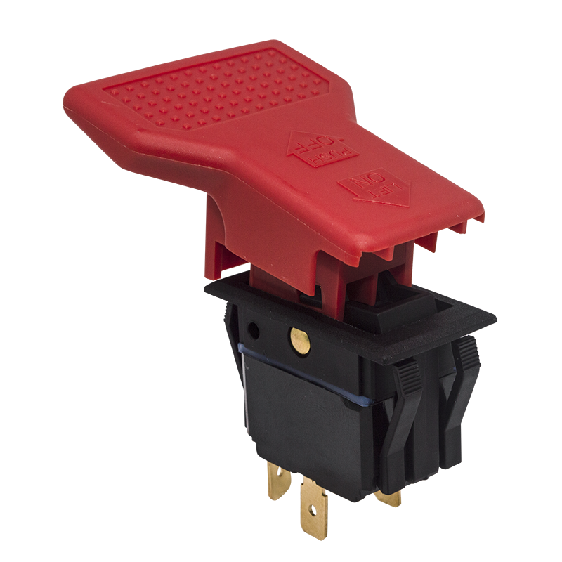 專為重型檯式工具(特別針對美國市場)開發的大電流翹板開關。內建可拆卸鎖定按鈕,可防止未經授權或意外操作,是一項安全功能。